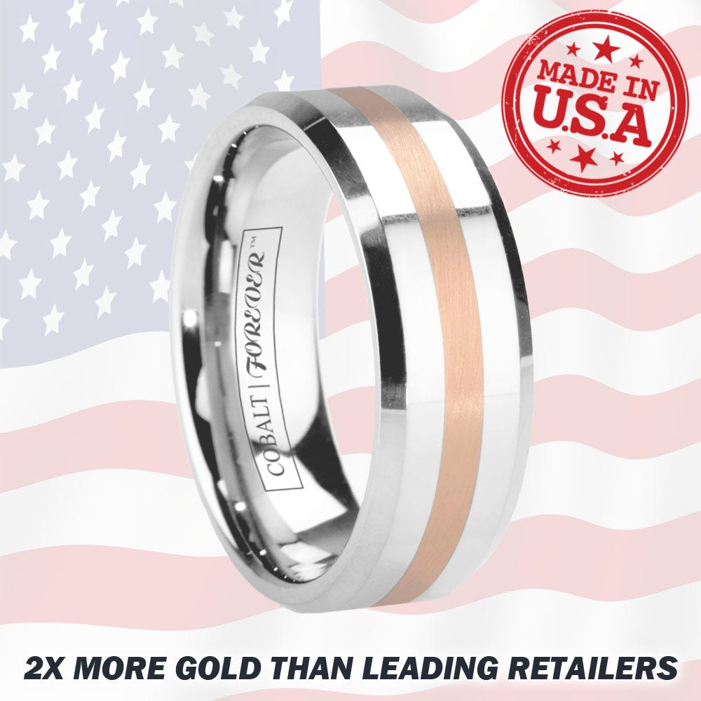 6mm 8mm Rose Gold Cobalt Chrome Wedding Band