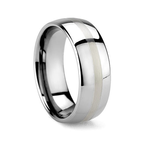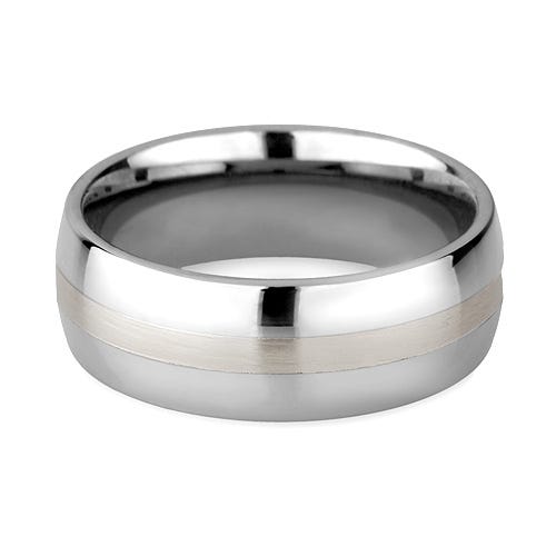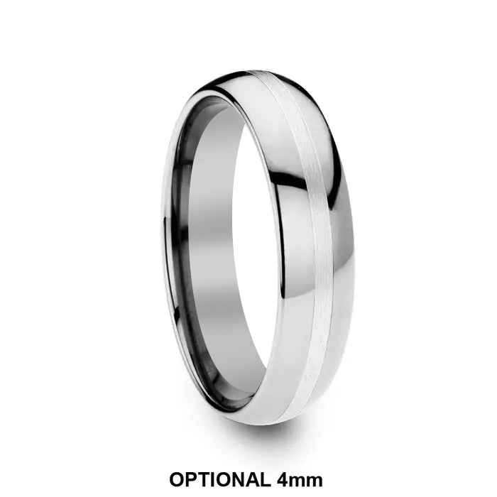 As the name suggests, the ZENITH is one of our finest inlaid Tungsten Carbide rings. It is a highly polished domed ring with an inlay of precious platinum. This ring is for the man who truly believes you cannot put a price on love.