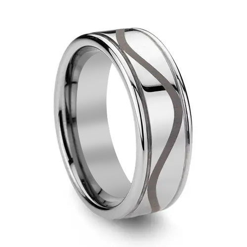 The striking laser etched design serpentines its way around the entire circumference of this ring. The highly polished tungsten encompassing the design provides a stark and dramatic contrast to this unique Tungsten Forever ring. The engraving is contained within two polished grooves, adding the perfect accent for this highly desirable piece. We laser etch the ring twice to ensure maximum clarity, contrast, and quality. Unlike other tungsten rings online, our Tungsten Forever™ bands are independently tested to guarantee they are the toughest of them all!