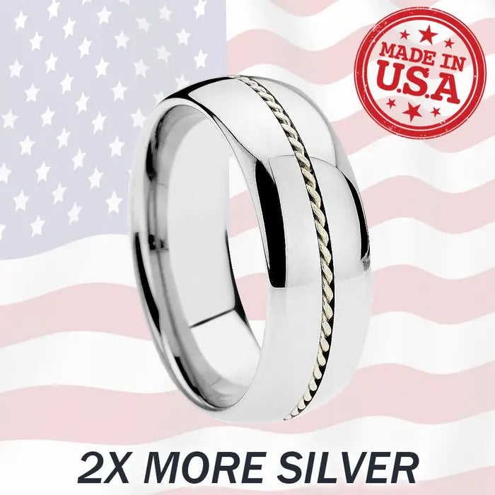 This unique ring is inlaid with a pure 935 Argentium handwoven silver.