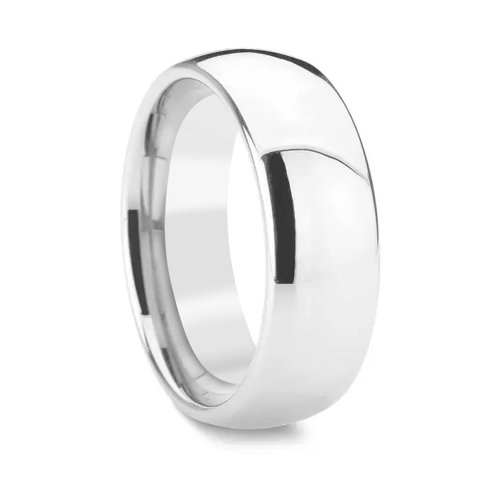 The style that never goes out of fashion! A classic domed style women's cobalt wedding band with rounded edges to hug the contours of your finger, the Porsche domed cobalt chrome wedding band shines with an exquisite high polished finish built to last and comes in 4mm width perfect for ladies' hands. Comfortable, durable and elegant, you'll be proud wearing this band each and every day.