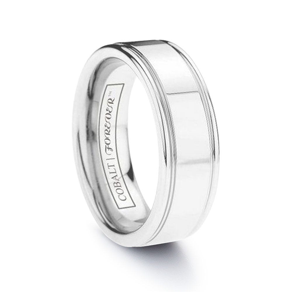 Comfortably rounded edges and detailed grooves complete these great women's or men's cobalt rings in 6mm and 8mm widths. Set in traditional pipe-cut style, the grooves to either edge give a bit of added styling to an otherwise simple, elegant cobalt ring.