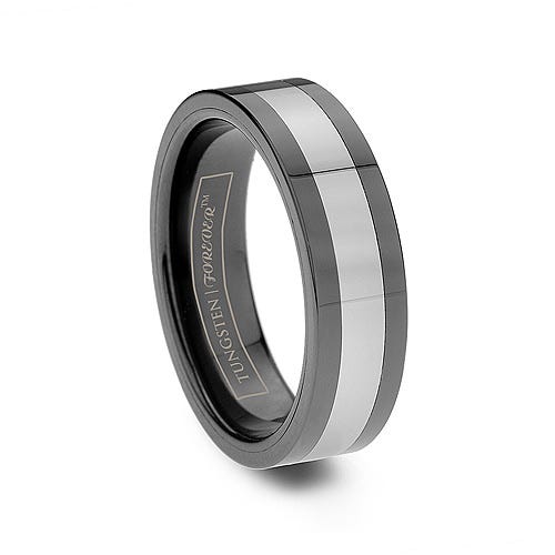 One of our new "two toned" rings which combines two amazing scratch resistant materials. The light weight designer black ceramic and the rugged, hefty tungsten carbide is fused together into an impeccable design that is sure to become a classic. Unlike other tungsten rings online, our Tungsten Forever™ bands are independently tested to guarantee they are the toughest of them all!