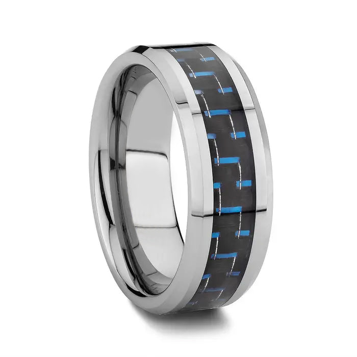 As sleek and stylish as it's namesake, the Bugatti is a cutting edge tungsten carbon fiber ring. With polished beveled edges and black carbon fiber inlay accentuated in blue and silver, this tungsten ring exudes modern class. Equal parts flash and function, it's the next best thing to actually driving a Bugatti. Unlike other tungsten rings online, our Tungsten Forever™ bands are independently tested to guarantee they are the toughest of them all!
