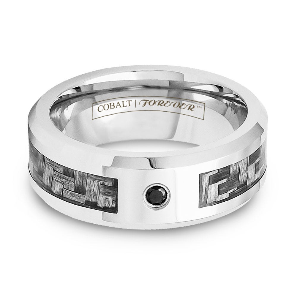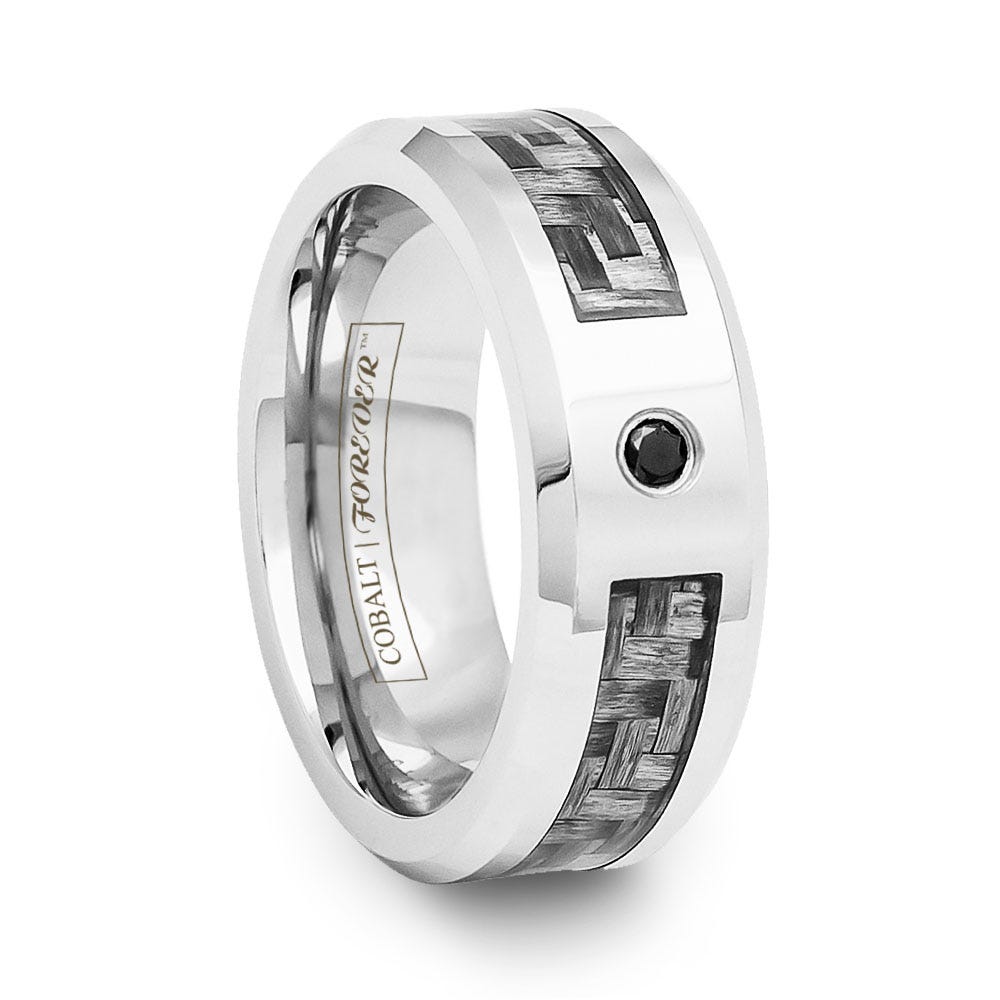 8mm Black Diamond Grey Carbon Fiber Cobalt Wedding Band