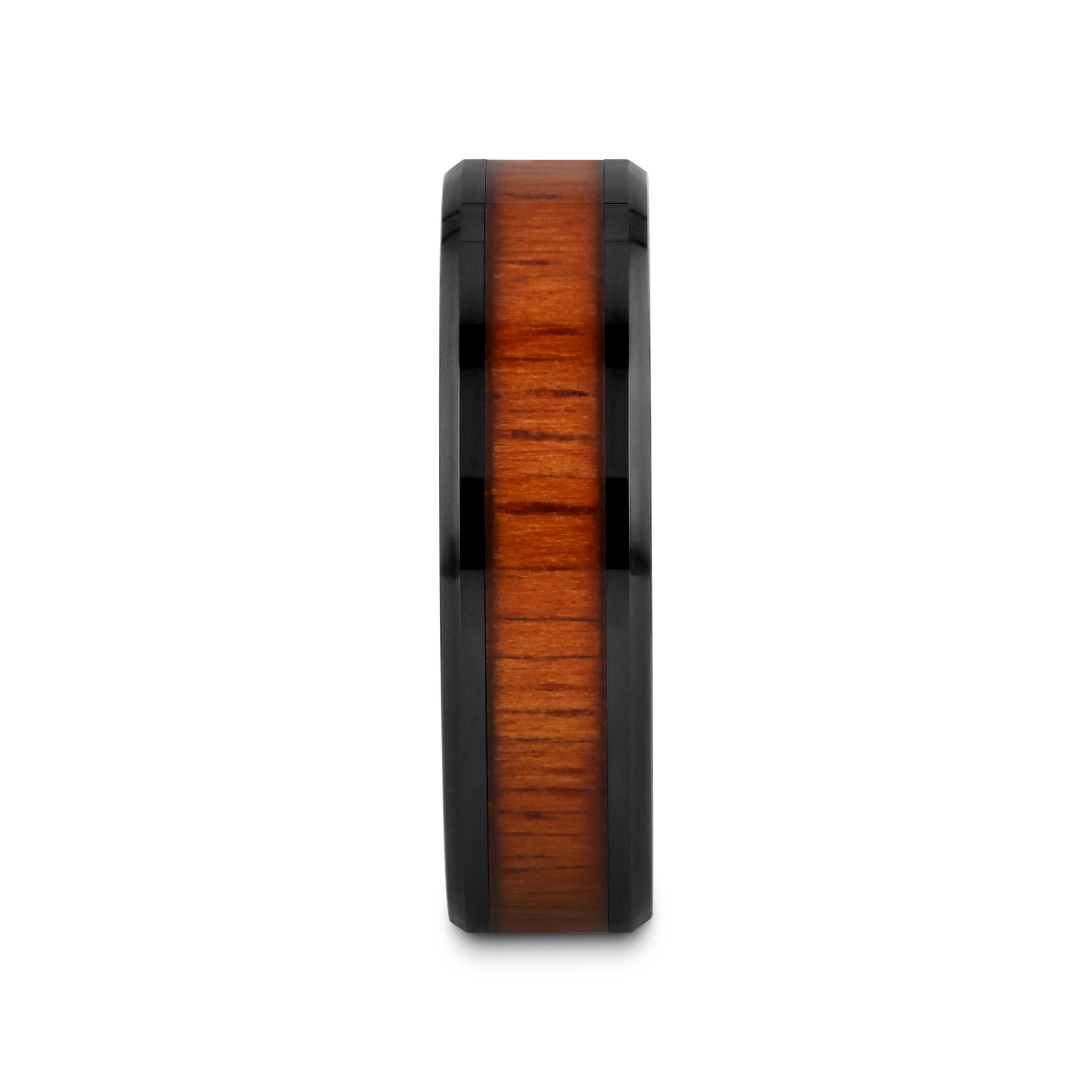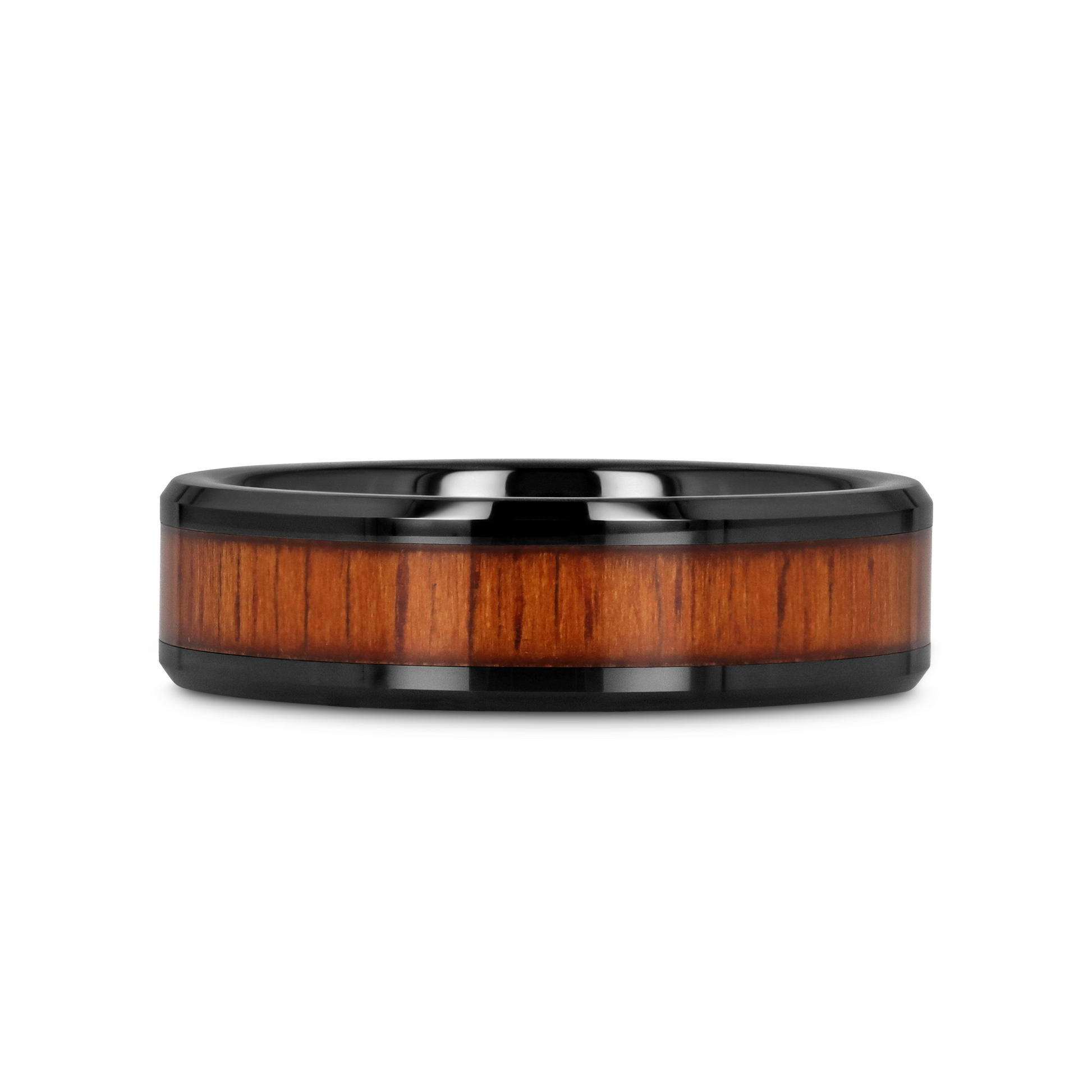 ACACIA Koa Wood Inlaid Black Ceramic Ring with Bevels - 4mm - 12mm