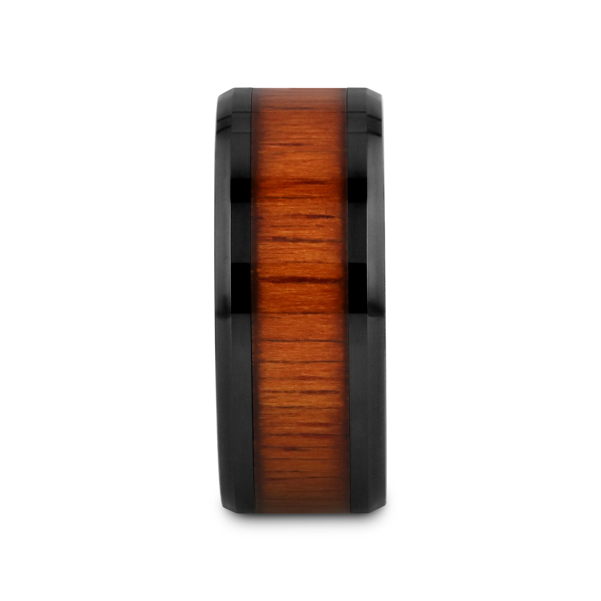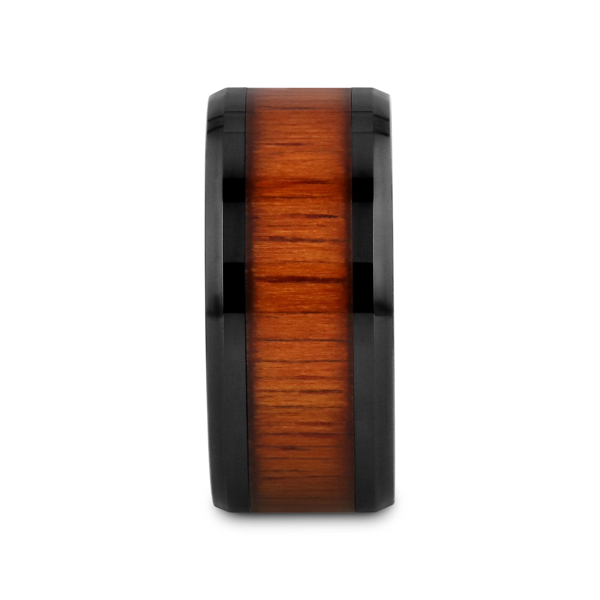 ACACIA Koa Wood Inlaid Black Ceramic Ring with Bevels - 8mm - 12mm
