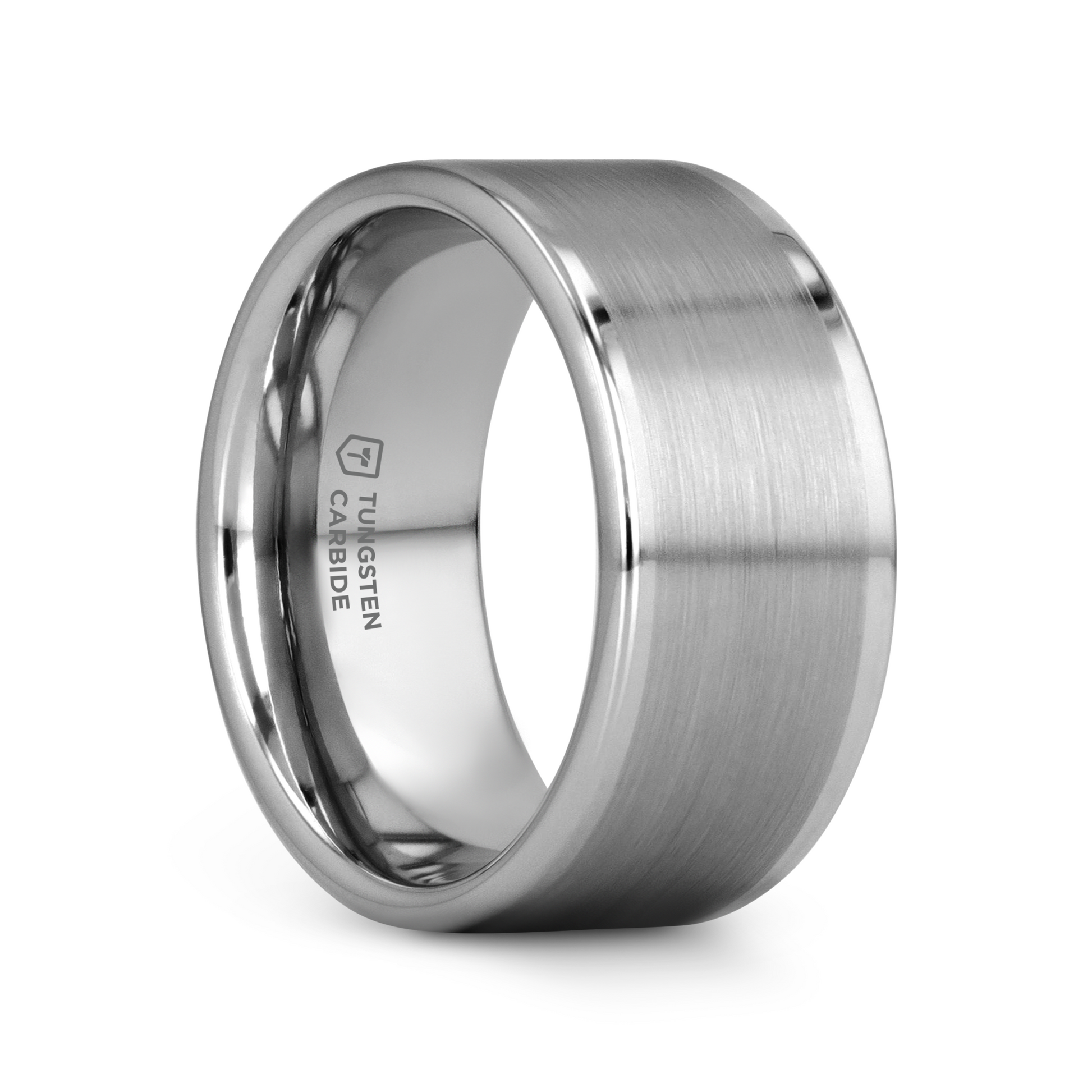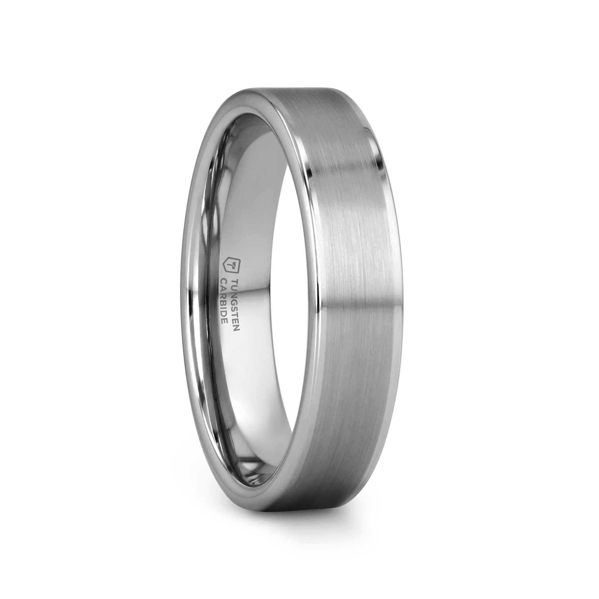 This classic flat-profiled Tungsten Carbide design gets a handsome makeover by Thorsten with its wide brush finish in the center of the ring while its polished edges catch the light and create a noteworthy contrast.