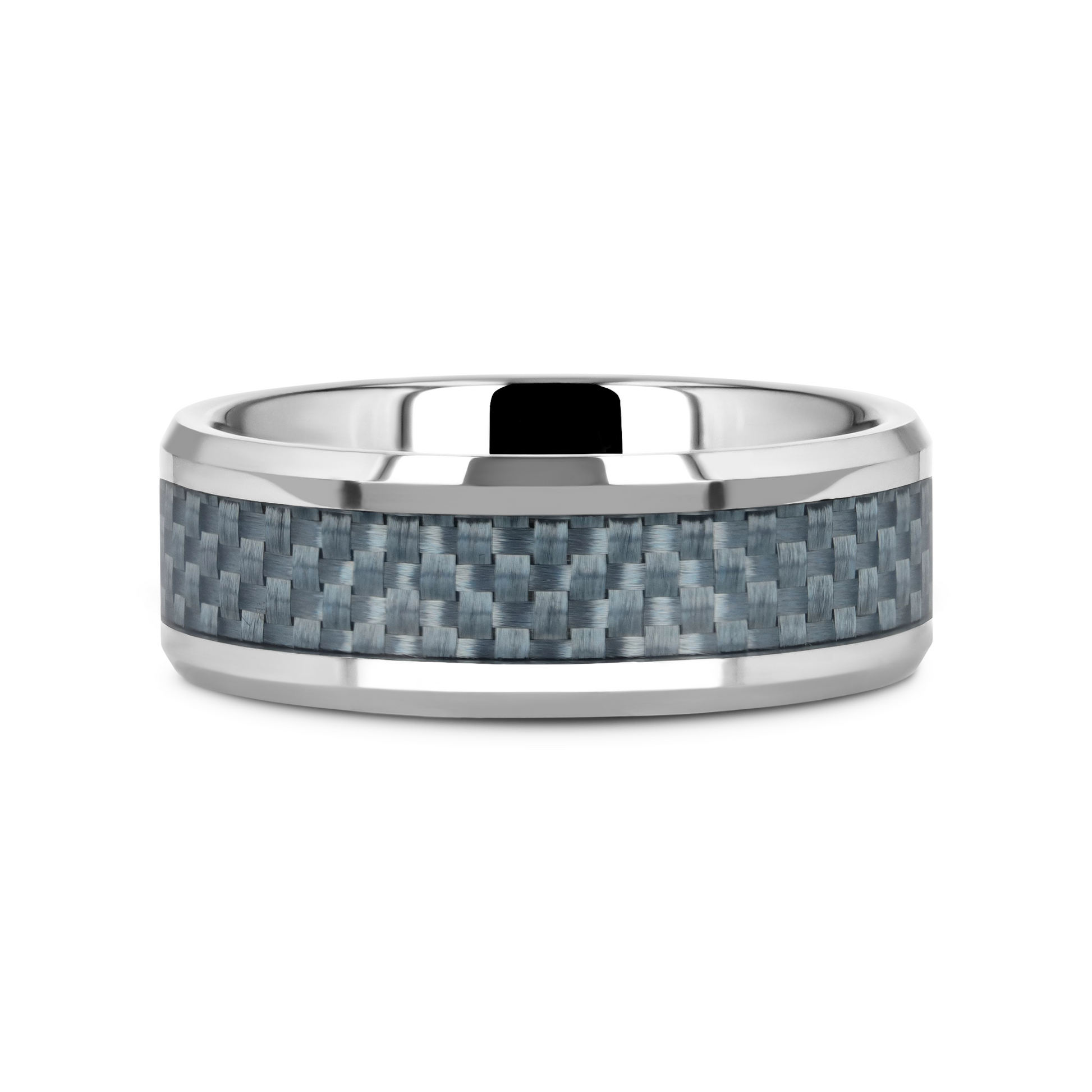 AUGUSTUS Tungsten Wedding Ring with Bevels and Blue Carbon Fiber Inlay - 4mm - 10mm