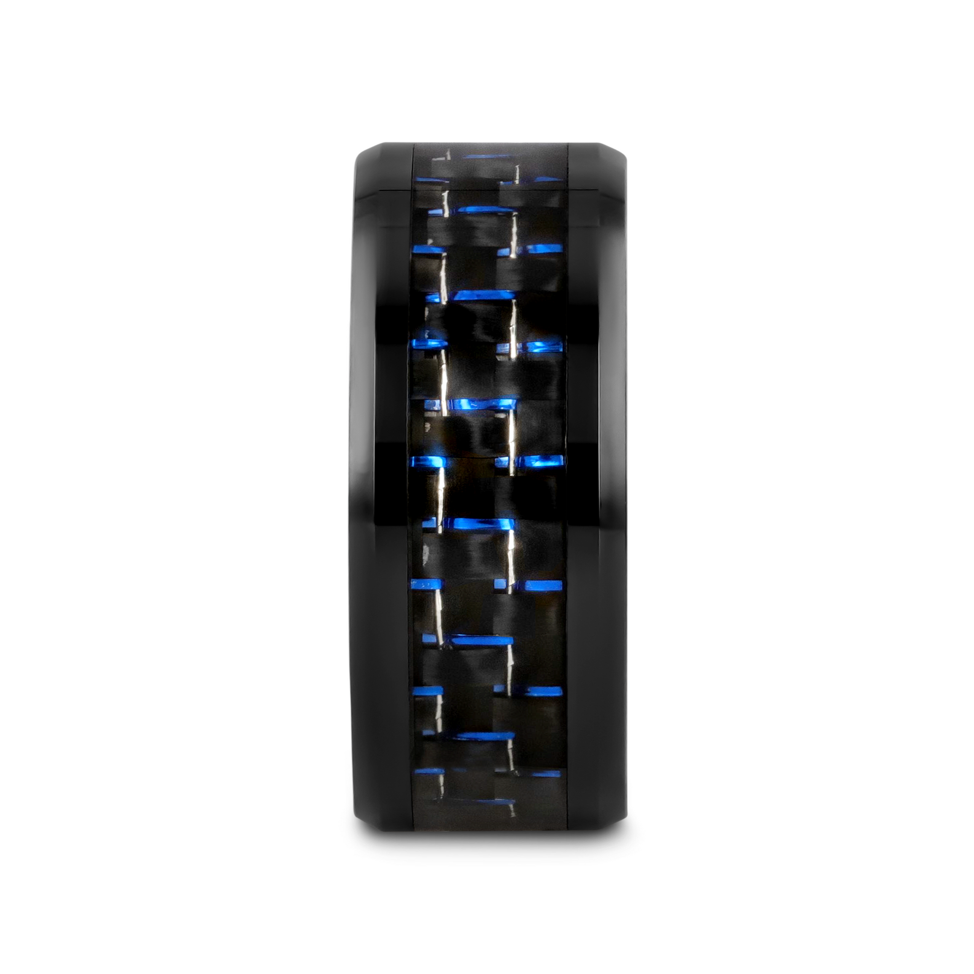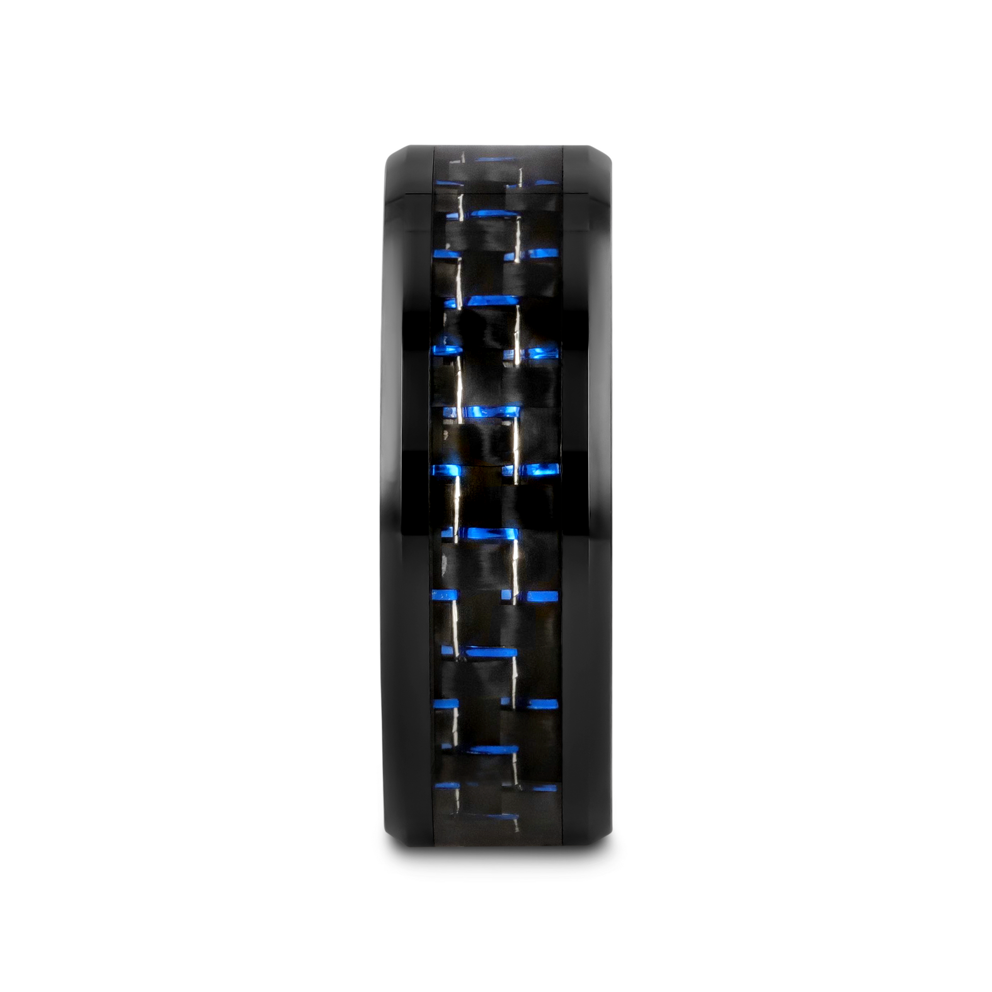 AVITUS Black Beveled Ceramic Ring with Blue & Black Carbon Fiber Inlay - 4mm - 10mm