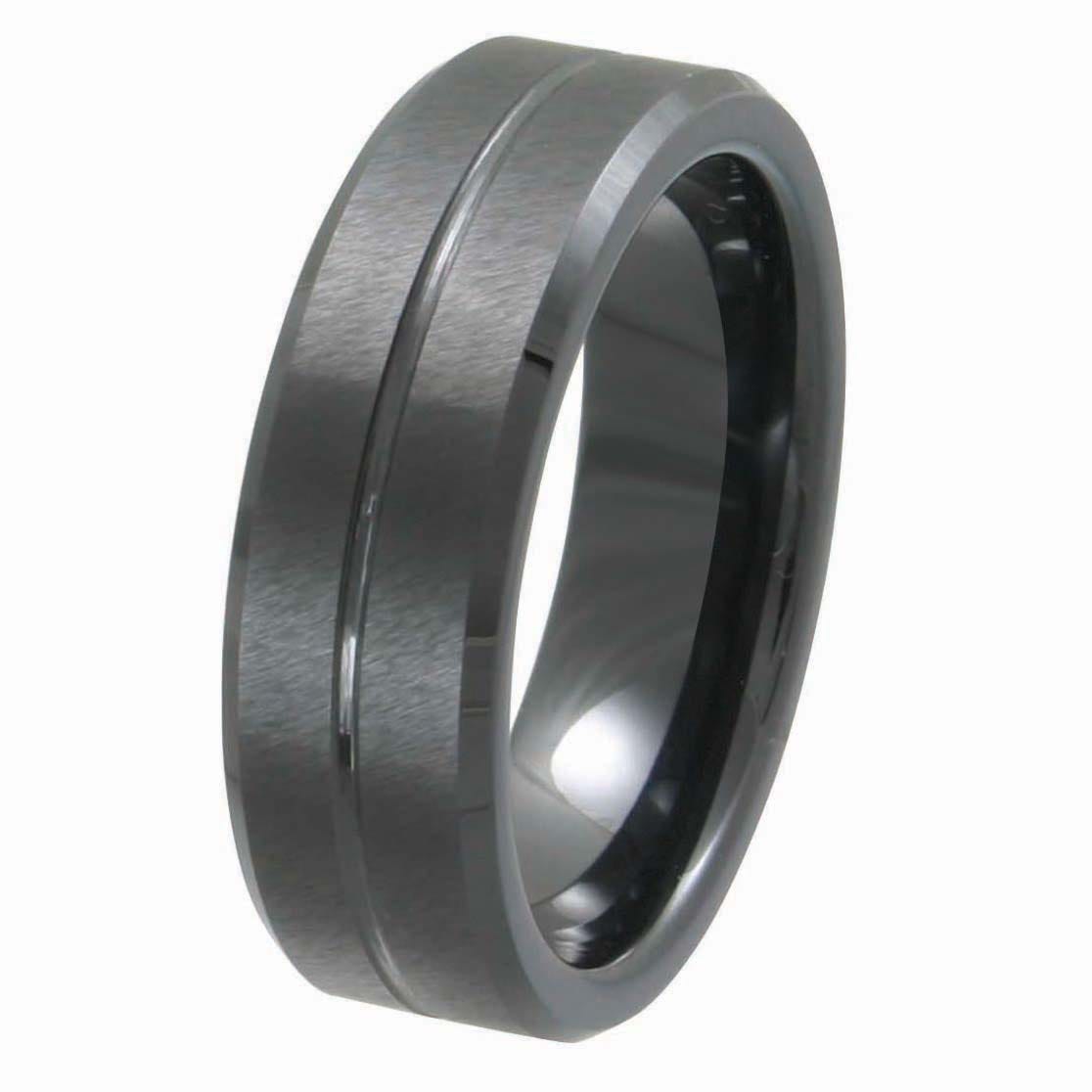 Not your standard beveled ceramic rings. The TREVI is handsomely upgraded with polished groove down the center of the ring and satin finish on the flat center. High polished beveled edges are a nice complement to this black on black ring.