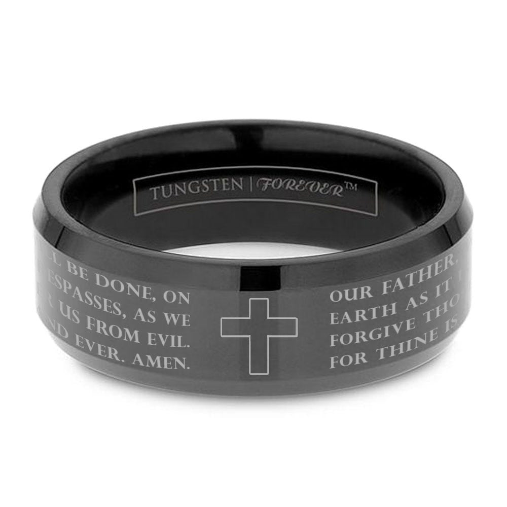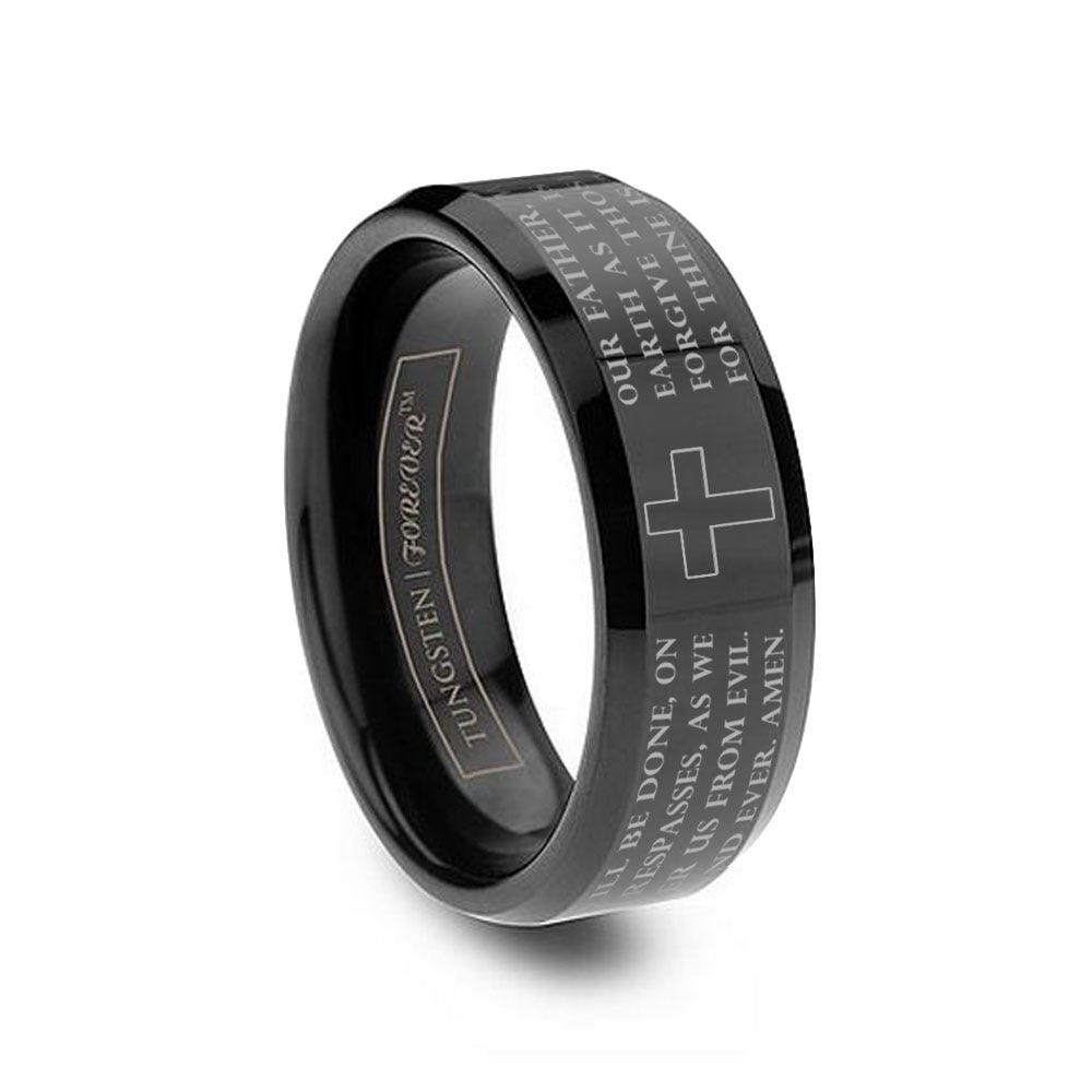 6mm 8mm Beveled Prayer Black Tungsten Wedding Band
