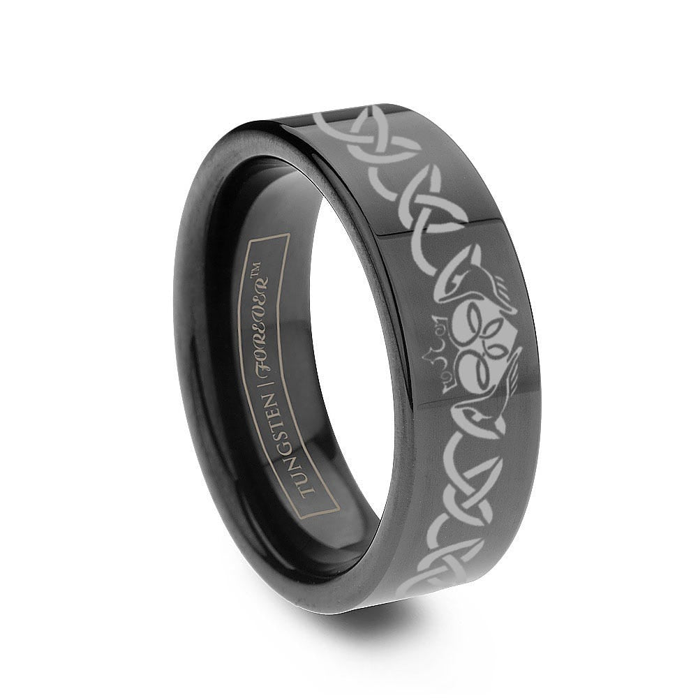 In Celtic art, woven patterns were used to represent eternal love. Choose the COMPANION black tungsten ring with woven laser design and you'll have a beautiful depiction of your eternal love forever laser engraved onto the rings exterior. Each woven pattern is completed on your choice of 6mm, 8mm or 10mm pipe-cut, black ring and comes full circle with a sacred heart.