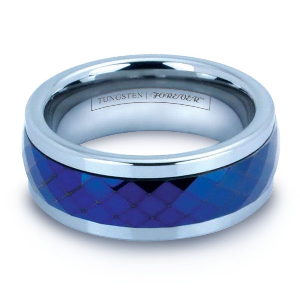 8mm Blue Plated Faceted Spinner Tungsten Wedding Band