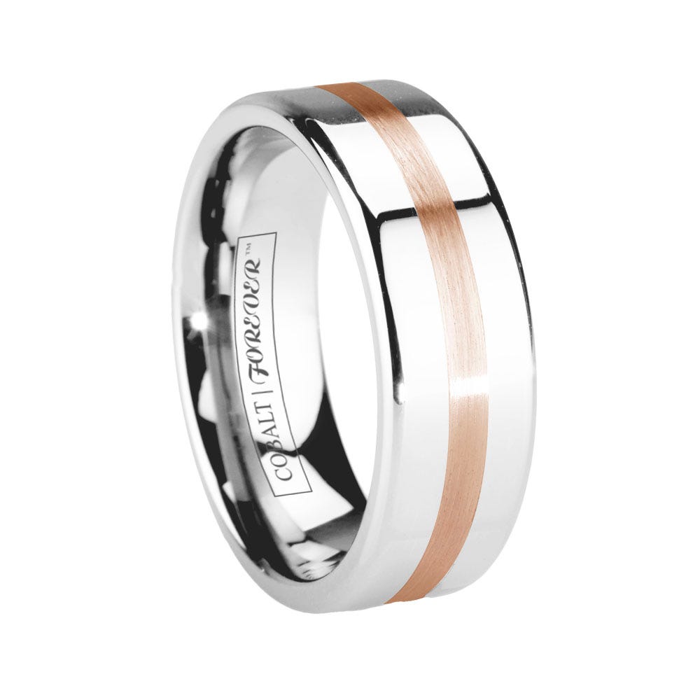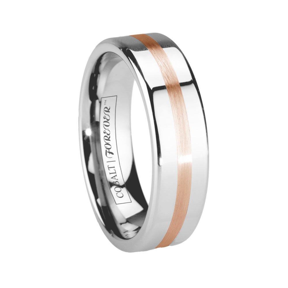 6mm 8mm Flat Pipe Cut Rose Gold Wedding Band