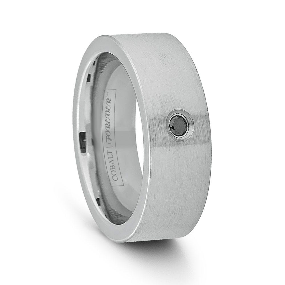 Flat Brushed Finish Cobalt Chrome Black Diamond Solitaire Wedding Band