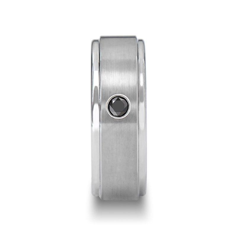 COVENTRY Raised Brushed Center Tungsten Ring with Black Diamond - 8mm
