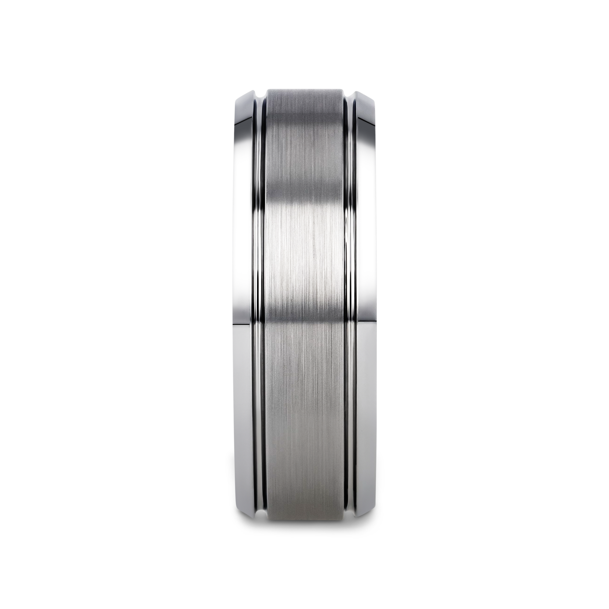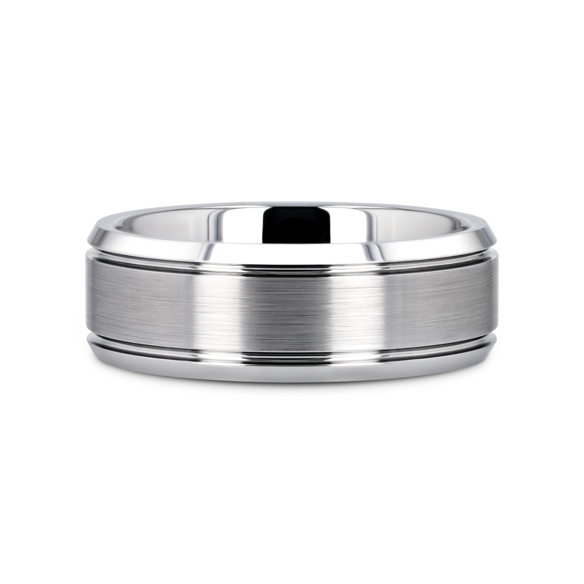 CRONUS Brushed Center with Polished Bevels Tungsten Wedding Band - 6mm & 8mm