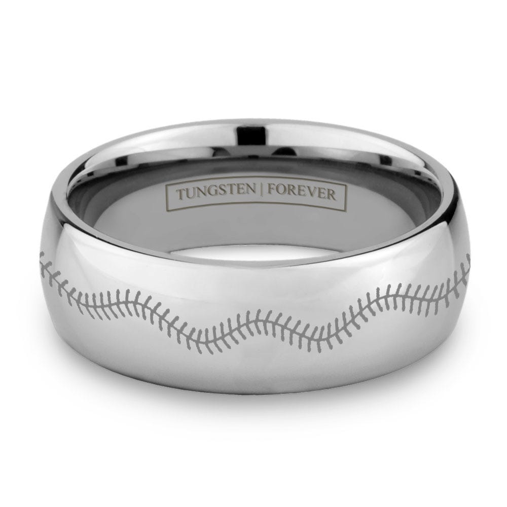 A throwback to America's favorite pastime. The BASEBALL ring features the instantly recognizable stitching pattern completed by our laser engraving machine.
