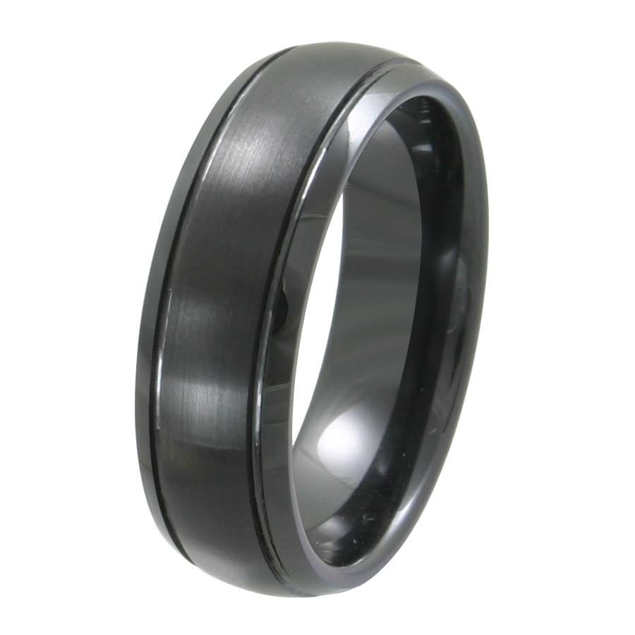 Domed for comfort, sleek for style, and black because it never goes out of fashion, the PEGASUS boasts a scratch resistance other black rings can't even dream of offering. A brushed center is framed by parallel grooves and polished edges. Available in unique 7mm width.