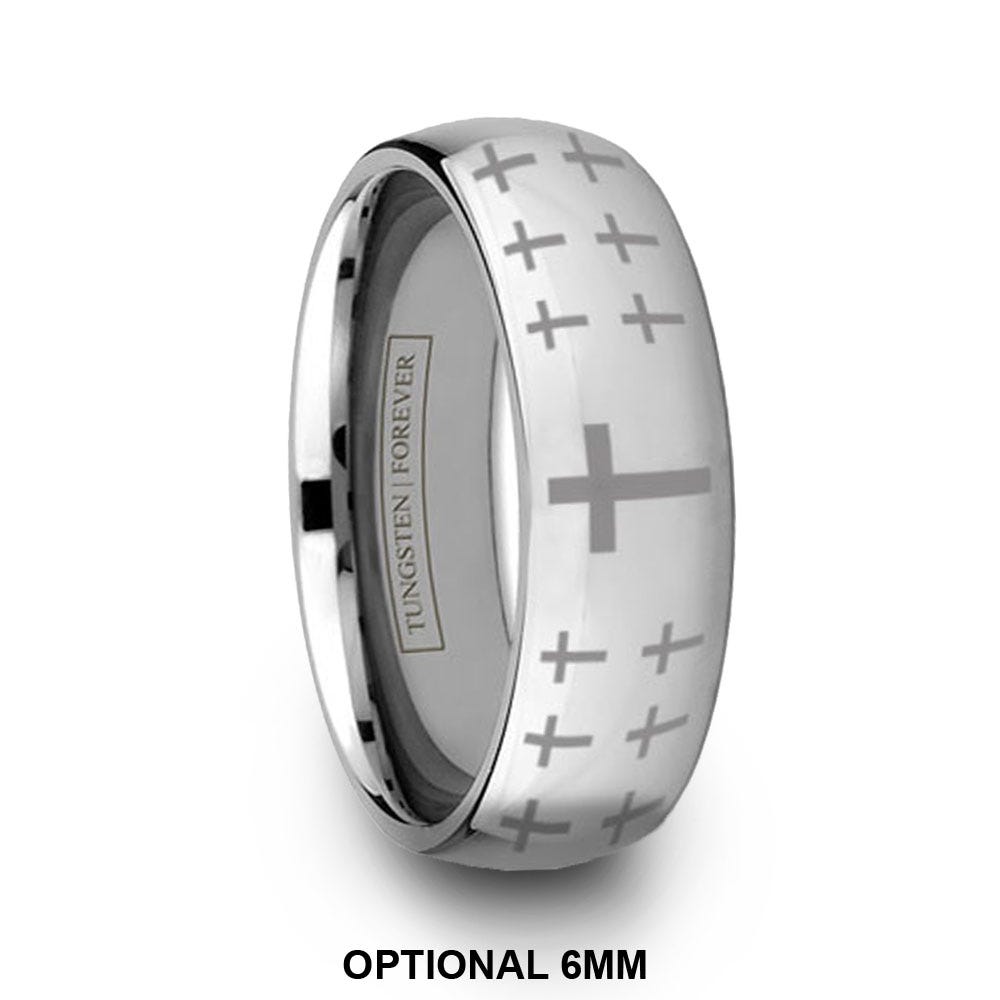Another Tungsten World laser design exclusive, the DEVOTION features a stylish cross pattern engraved on the surface of our scratch resistant, high polished tungsten band. Available in your choice of 6mm or 8mm, each ring is laser etched to order. Don't forget to add your personal message to the ring's interior for an added personal touch.