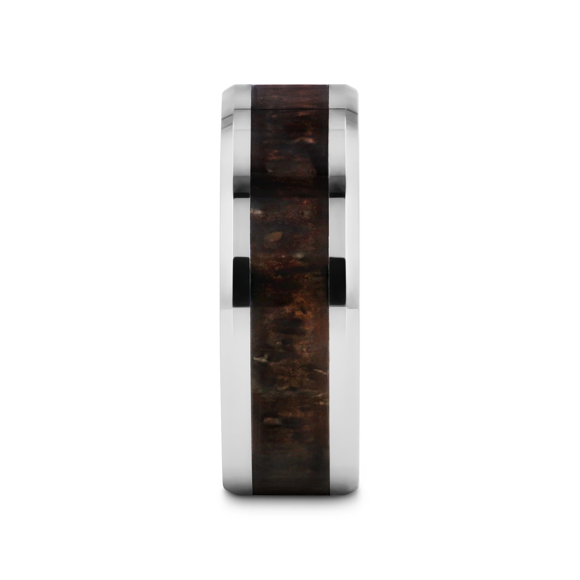 FAWN Beveled Tungsten Carbide Polished Men's Wedding Band with Dark Antler Inlay - 8mm