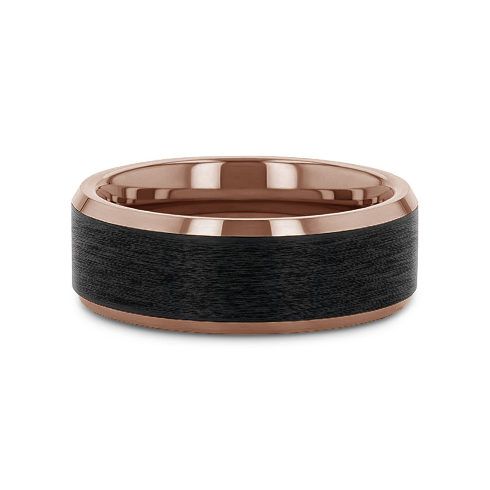 FERROS Espresso Plated Tungsten Polished Beveled Ring with Brushed Black Center - 8mm