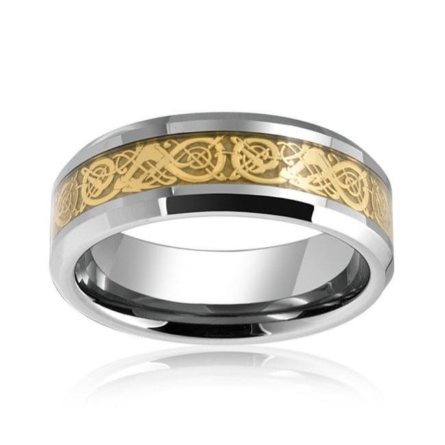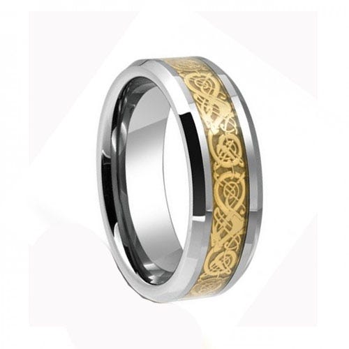Gold Dragon Carbon Fiber Tungsten Ring