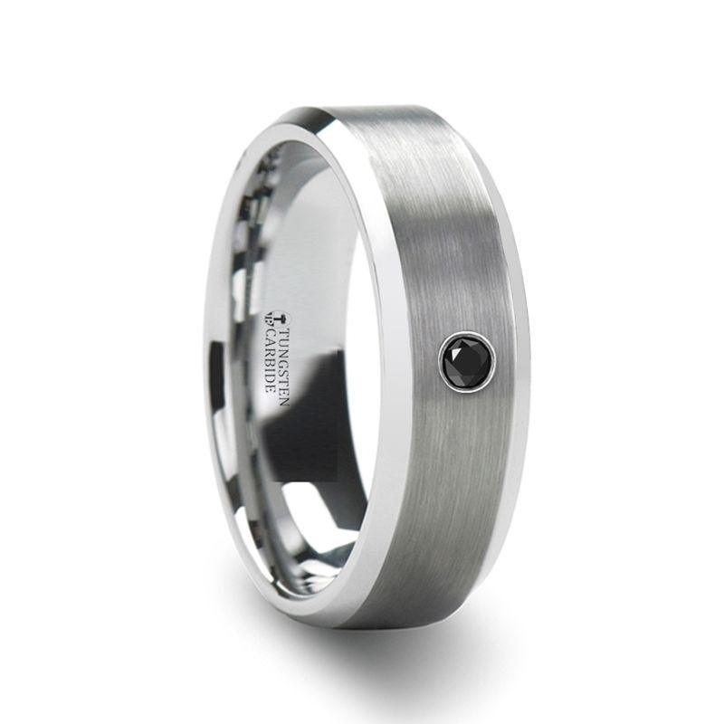 The Lysandra Brushed Tungsten Wedding Band is perfect for anyone looking to add contrast and a touch of class to their elegant style. The brushed finish is subtle, but the beveled edges bring it back with a shiny, polished design. The 0.05 carat black diamond gives it a classy style to accent your style. This is that one-of-a-kind wedding band that will never go out of fashion!