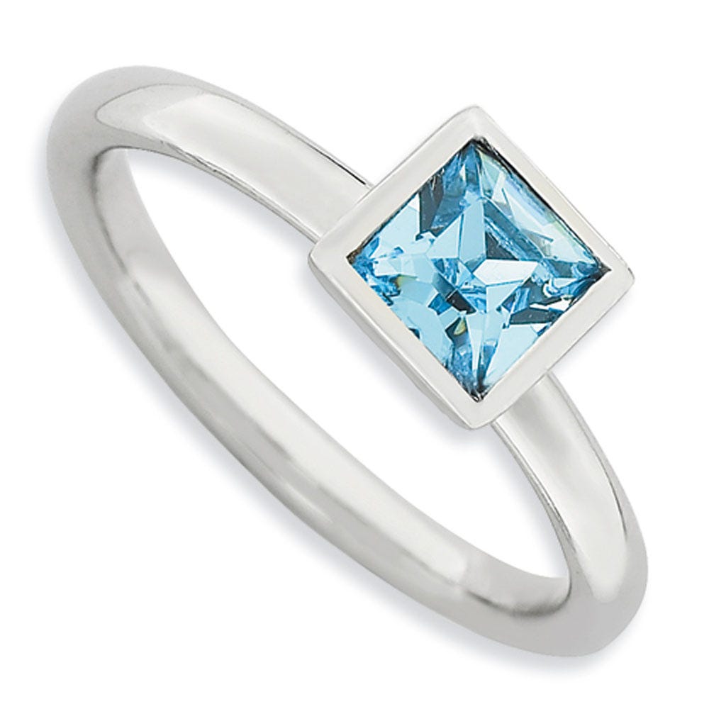 The next best thing to an aquamarine ring? How about a sterling silver band featuring a flawless crystal made by the world renowned Swarovski company. The ORCHID's slim and high polished band is the perfect complement to this large princess cut crystal with exquisite color and clarity. She'll be speechless from the moment she sets her eyes on this ring.