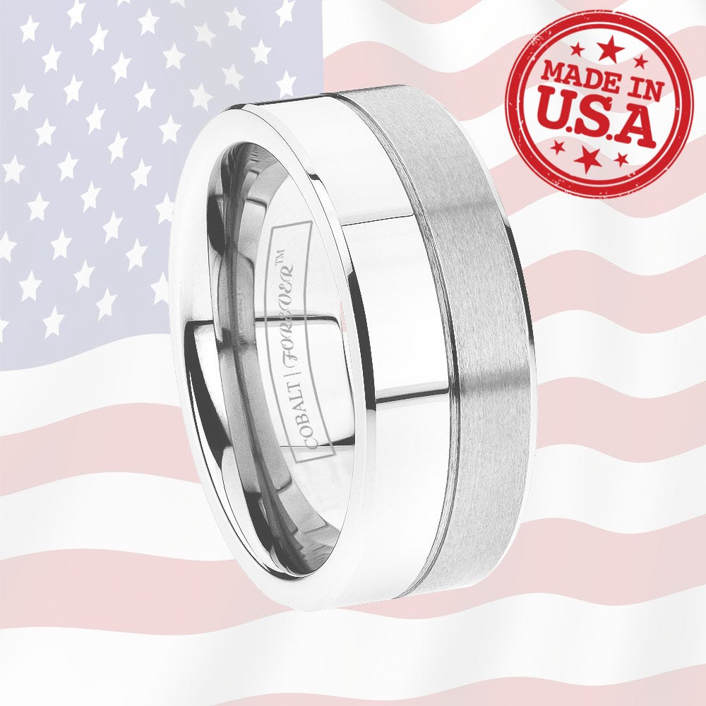 Taken from the pages of mythology, POLLOX is the twin ring to our CASTOR tungsten carbide ring. Identical in every way but in cobalt chrome, the POLLOX has a dual high polish and brushed finish exterior with center groove. And this 6mm and 8mm cobalt ring is complete with comfort fit on the interior. Lifetime Sizing, Lifetime Warranty!