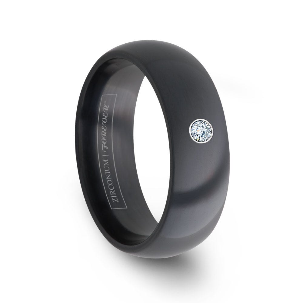 6mm 8mm Domed Solitaire Diamond Black Zirconium Wedding Band