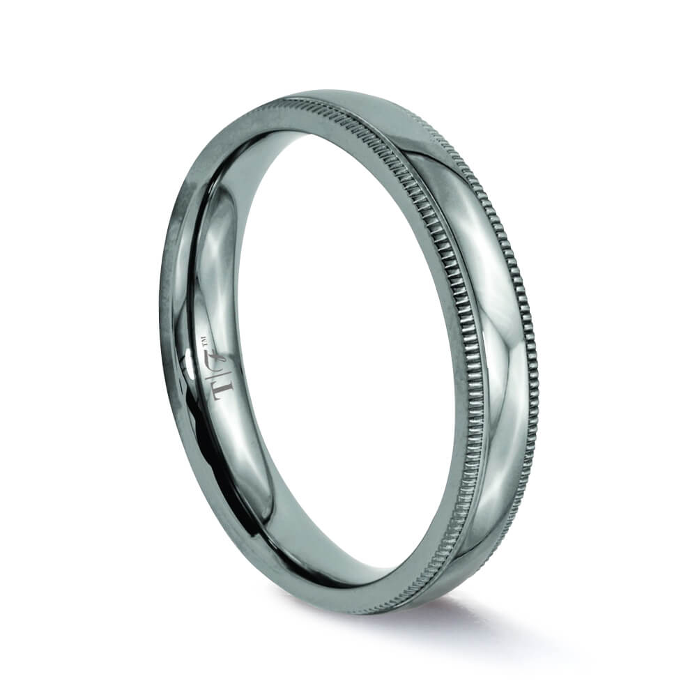 The term "milgrain" literally means "a thousand grains" and has been a staple of jewelry making for centuries. The BRUSSELS has an antique look expertly balanced by modern titanium jewelry techniques. Domed and coming in widths of 4mm, 6mm and 8mm, this ring makes for a great matching wedding set or the perfect stackable wedding band.