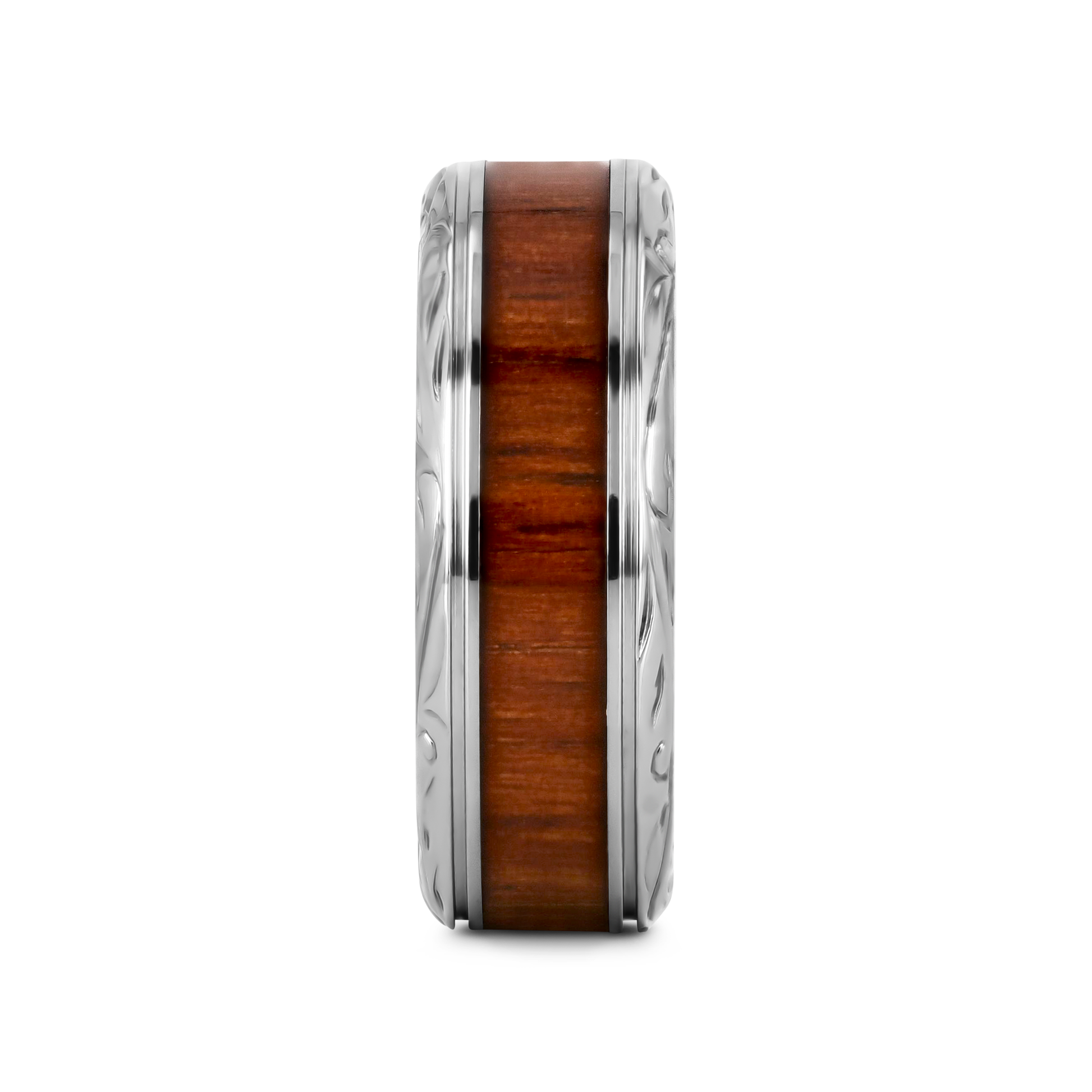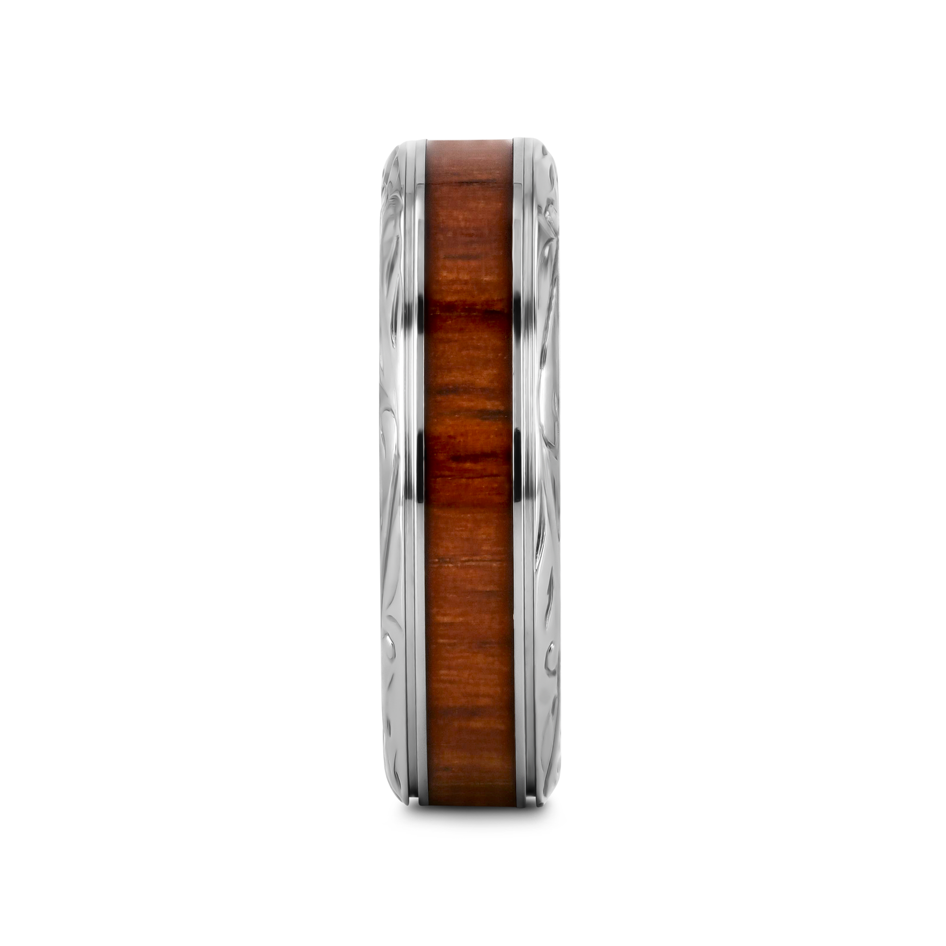 OHANA Koa Wood Inlaid Titanium Men’s Wedding Ring with Intricate Edges - 6mm - 10mm