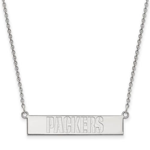 Small Green Bay Packers Bar Necklace 925 Sterling Silver.