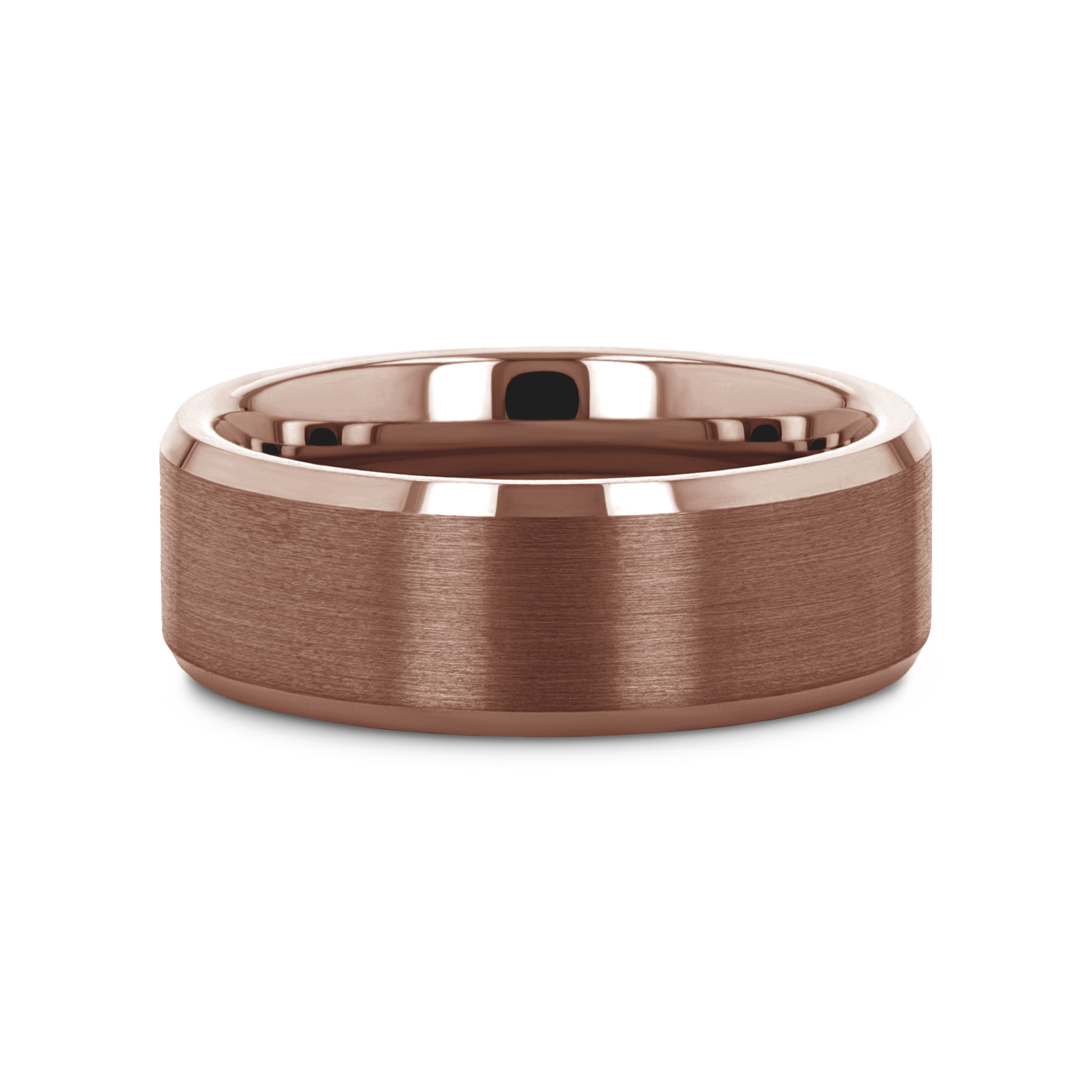 ROKA Flat Beveled Espresso Tungsten Carbide Ring with Brushed Center - 8mm