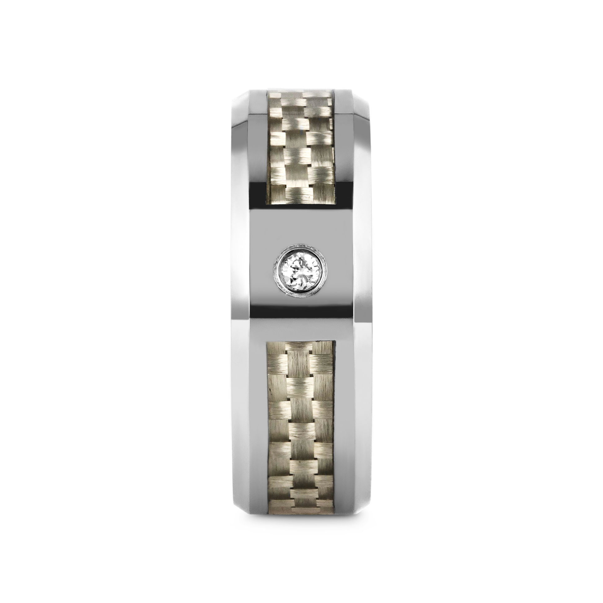 ROYCE Tungsten Carbide Wedding Band with White Carbon Fiber and White Diamond - 8mm