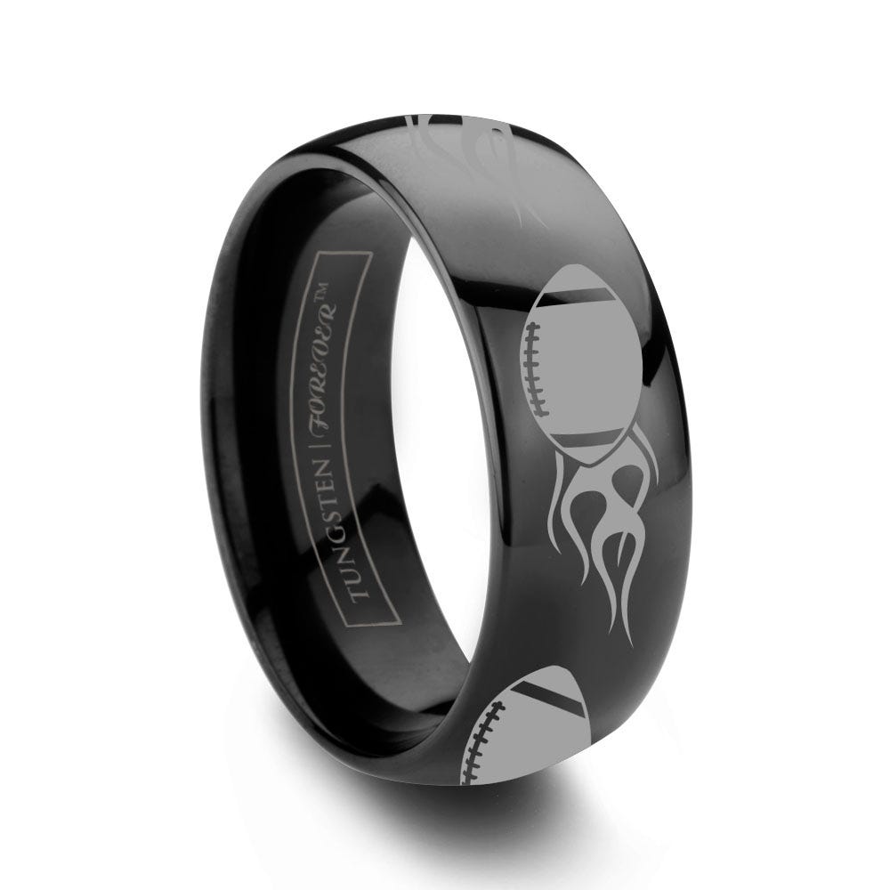 6mm 8mm Domed Football Black Tungsten Wedding Band