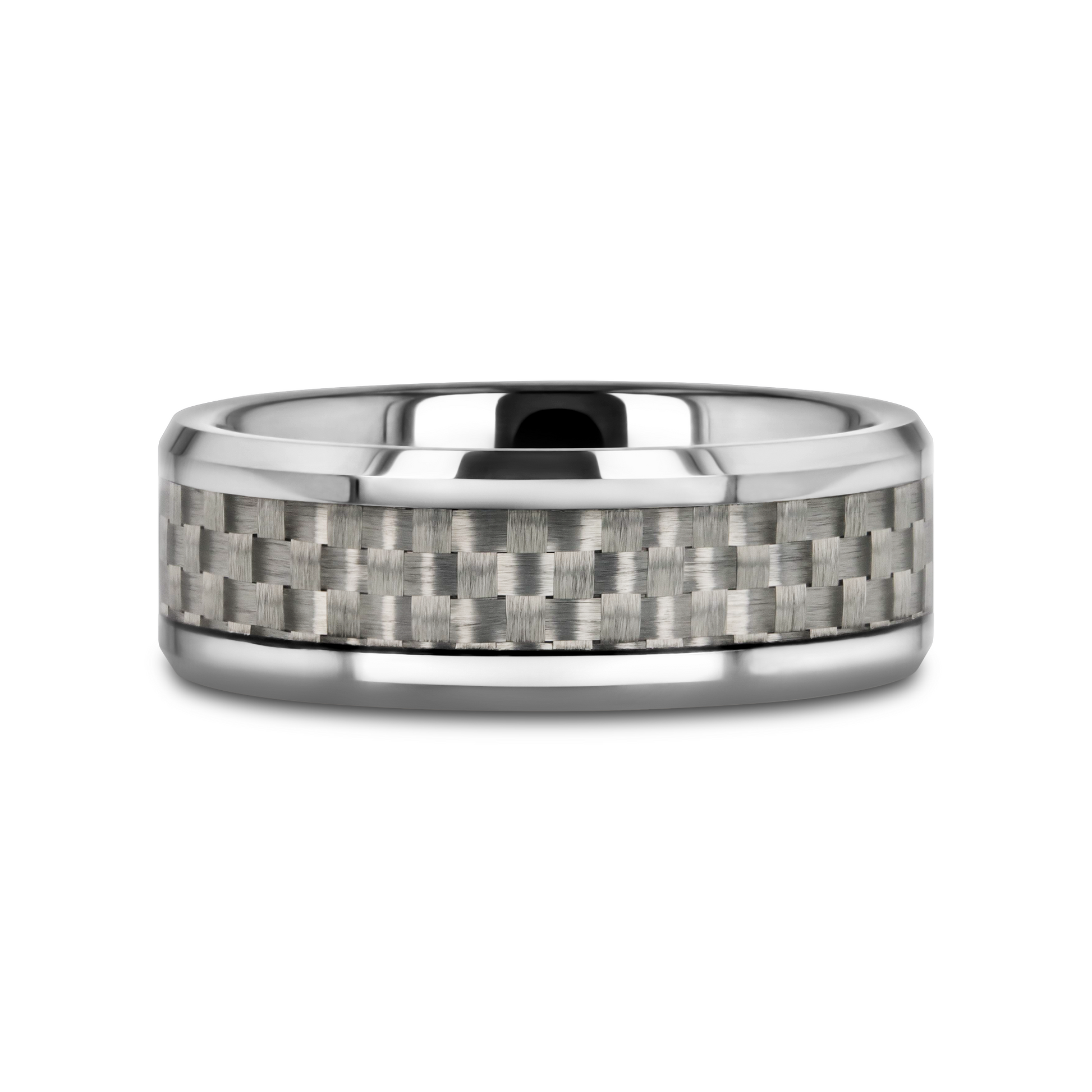 This stunning design by Thorsten combines the hightech look of White Carbon Fiber inlaid to a Tungsten Carbide ring with beveled edges and is one of the hottest selling styles in America.