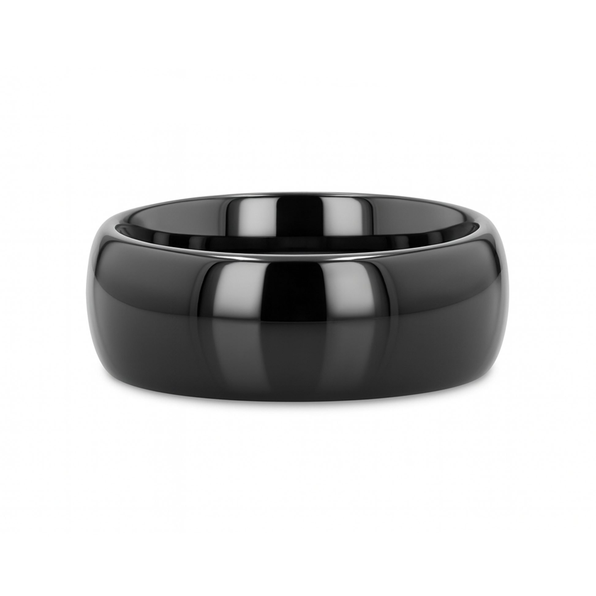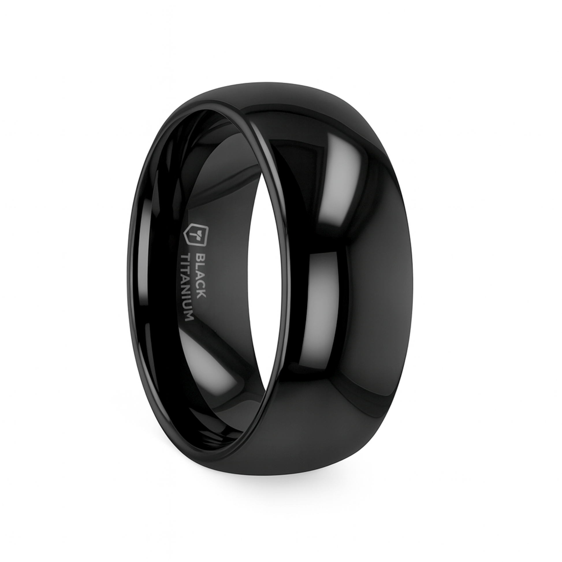 VAREN Black Titanium Polished Finish Men’s Domed Wedding Band - 8mm