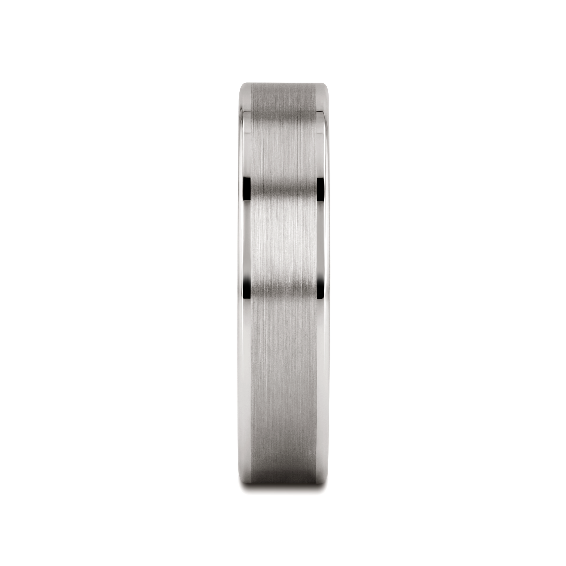 This precision crafted flat style white tungsten ring with brush finished center from our White Tungsten Rings line is made especially for couples who love the durability of tungsten and the bright white color of platinum. This style is available in 4mm, 6mm and 8mm wide for couples who prefer matching rings.