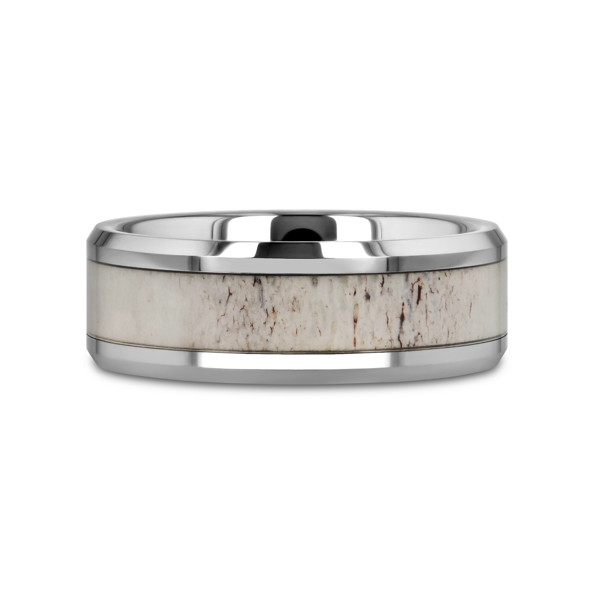 WHITETAIL Polished Beveled Tungsten Carbide Men's Wedding Band with Off-White Deer Antler Inlay - 8mm