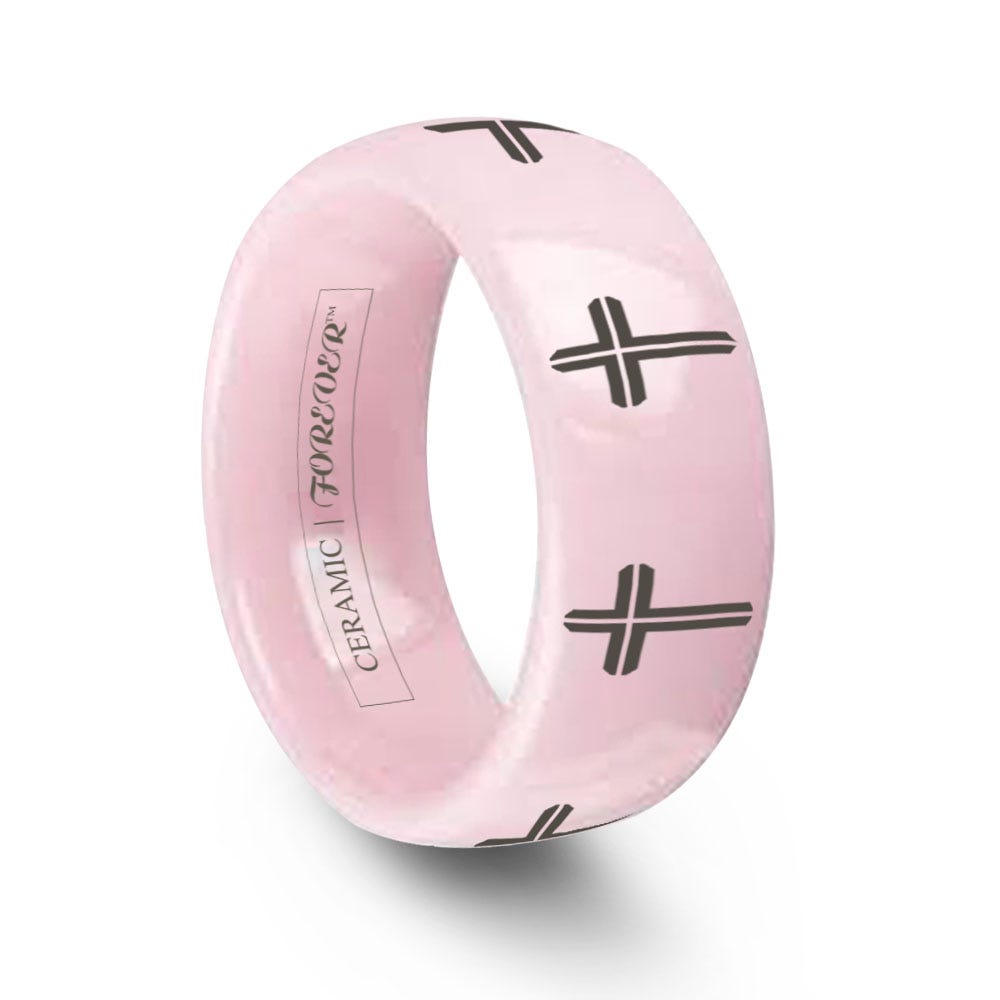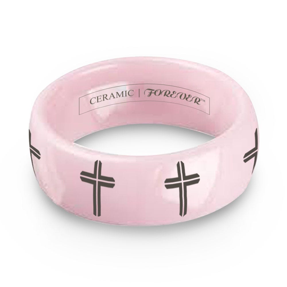 8mm Domed Christian Cross Pink Ceramic Wedding Band