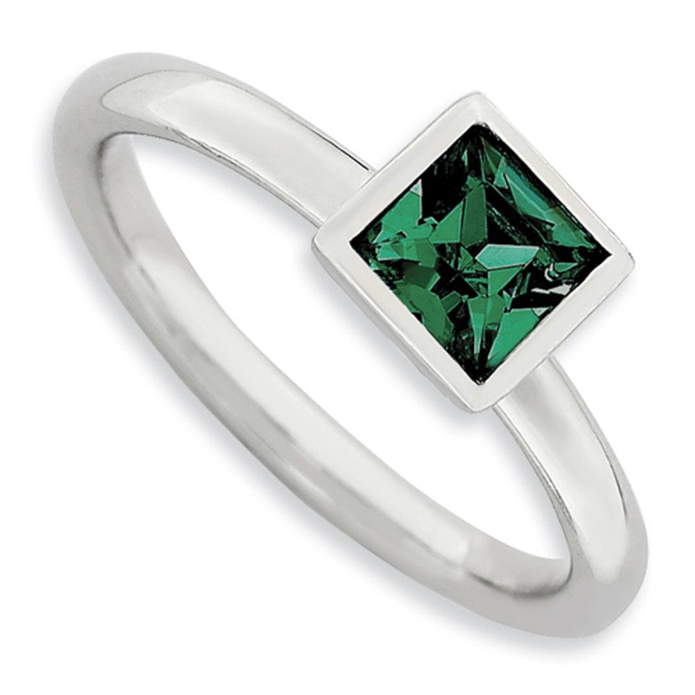 Stunning in its depth of color, the LILY features an emerald green crystal made by the famous Swarovski jewelers. Each crystal is cut to the precise standard for color and clarity like no other. Set into a sterling silver engagement band, this lovely ring is an elegant choice for the one you love.