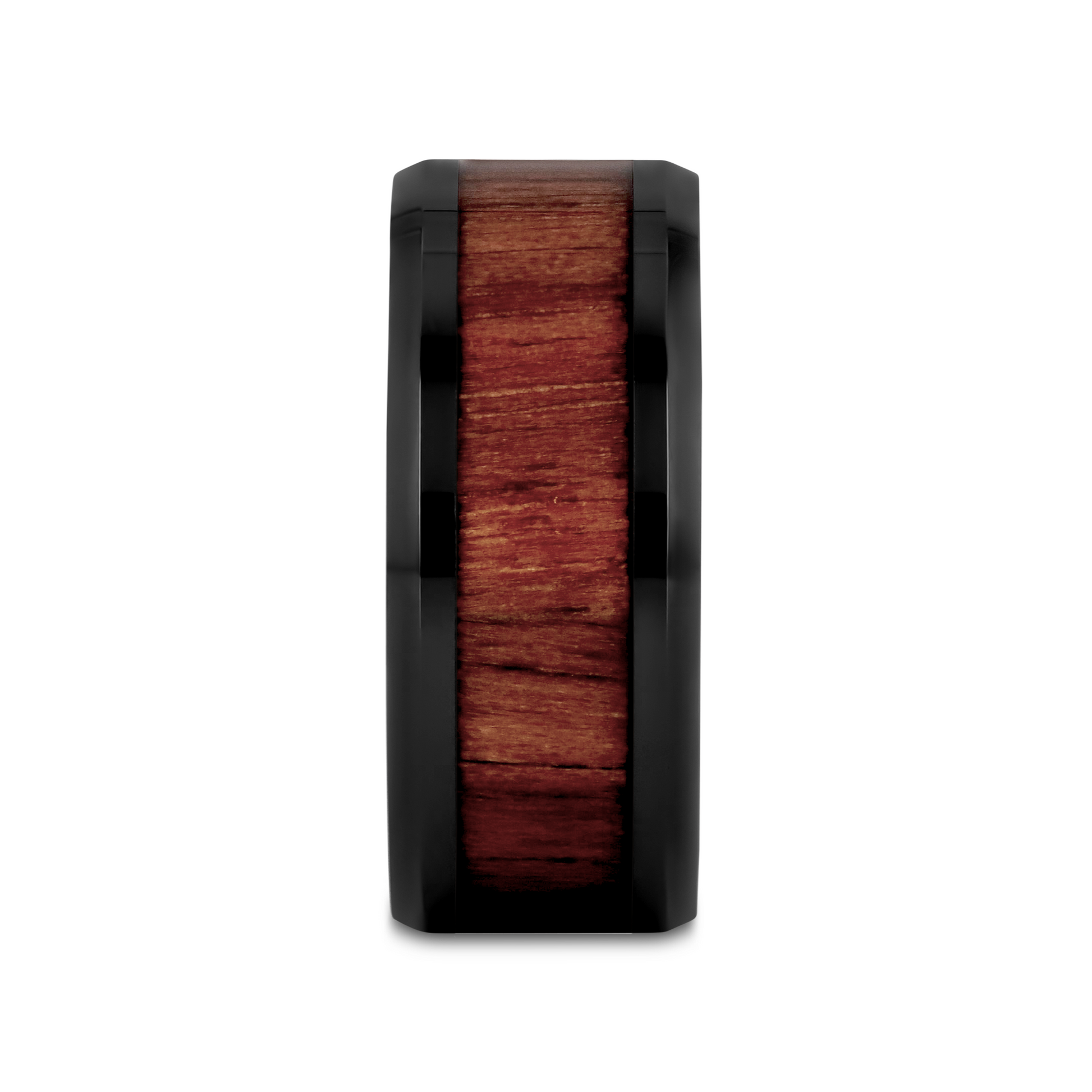 YUKON Beveled Black Ceramic Wedding Band with Black Walnut Wood Inlay - 4mm - 12mm