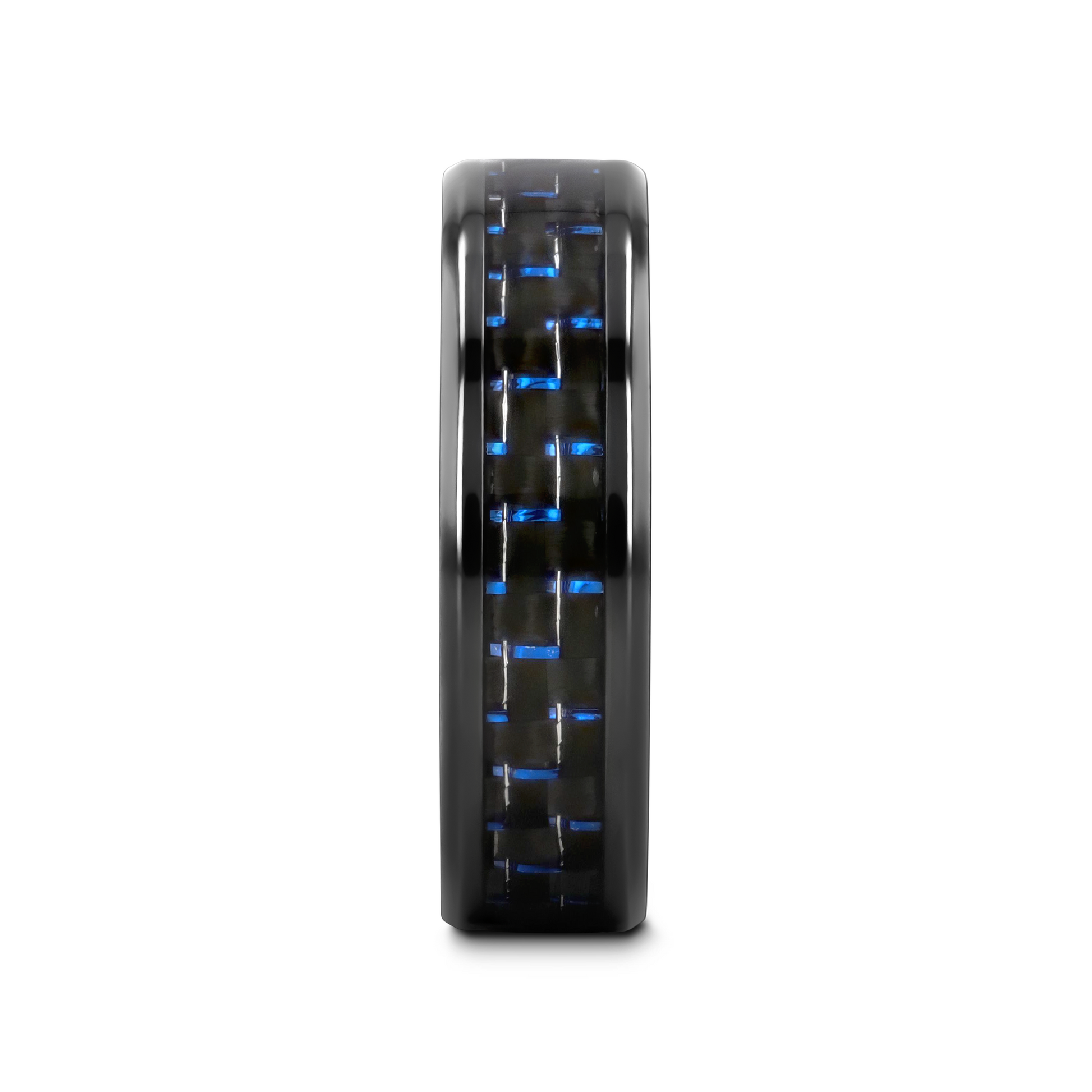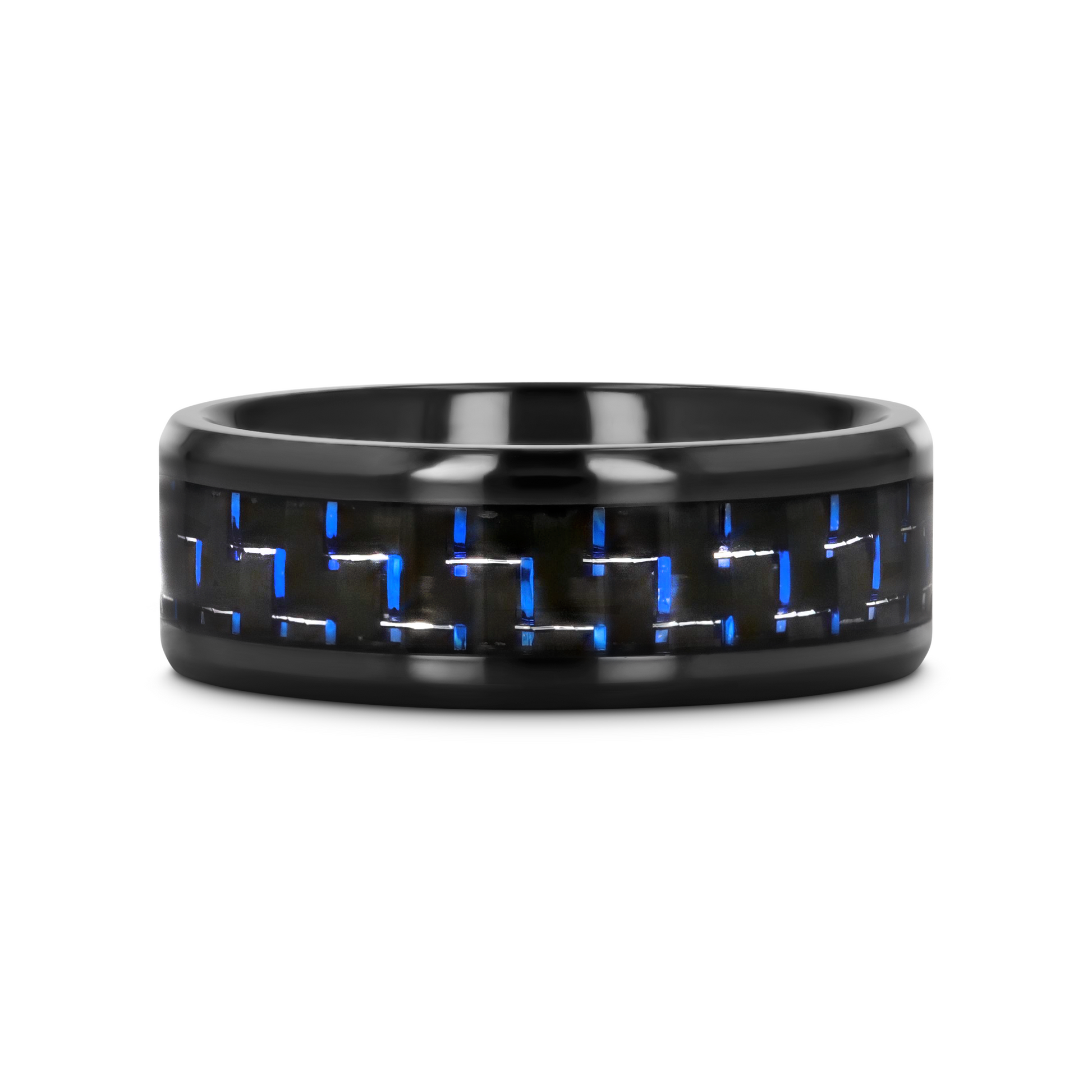 ZAYDEN Black Titanium Ring with Blue and Black Carbon Fiber Inlay and Bevels - 8mm